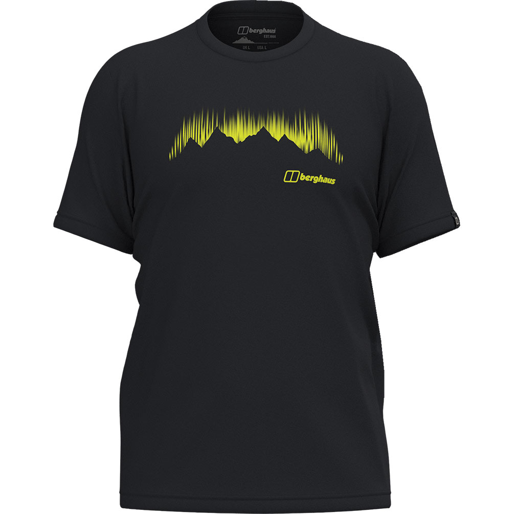 Das Produkt, das nicht neu erfunden werden muss – ein Baumwoll-T-Shirt mit auffälliger Printgrafik. – Egal welchen Stil Sie haben, dieses T-Shirt aus 100 % Bio-Baumwolle sollte auf Ihrer Ausrüstungsliste nicht fehlen. Die moderne Passform ist bequem und sieht toll aus, mit hübschen Nähten an Hals, Bündchen und Saum. Und die Printgrafik mit Nordlichtern und Bergsilhouette zeugt von der Abenteuerlust von Berghaus.