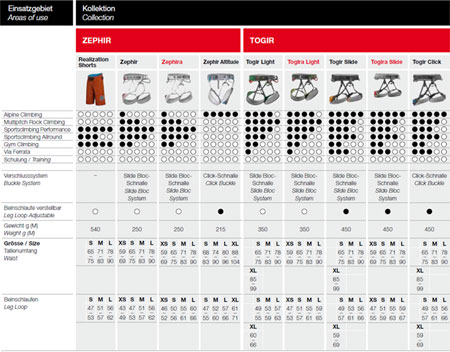 Klettergurtübersicht
