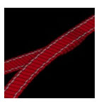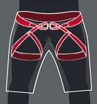 im Bereich der Klettergurte ein: durch den zweiteiligen Bandverlauf