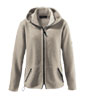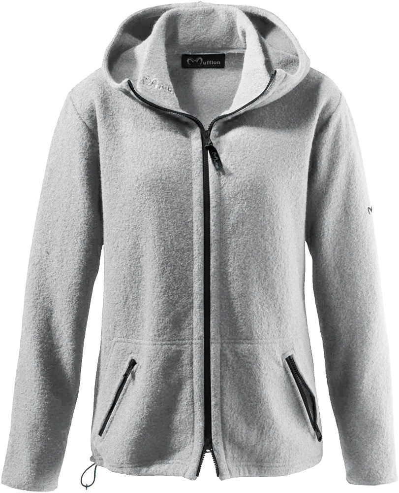 Die Mufflon Nele ist eine Damenwolljacke mit innenliegenden Stehkragen und Kapuze