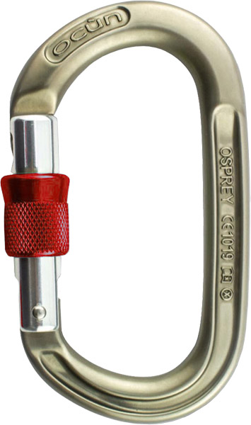 Screw von Ocun. Der Schraubkarabiner besitzt eine leicht asymmetrische Ovalform.
