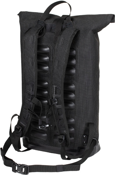 Hüftgurt. Das Tragesystem ist eine ORTLIEB-Entwicklung, komplett hergestellt in