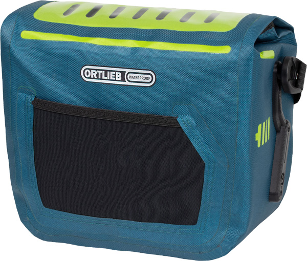 E-Mate. Typisch für ORTLIEB-Lenkertaschen sind der große Reflektor und der magnetische Taschendeckel