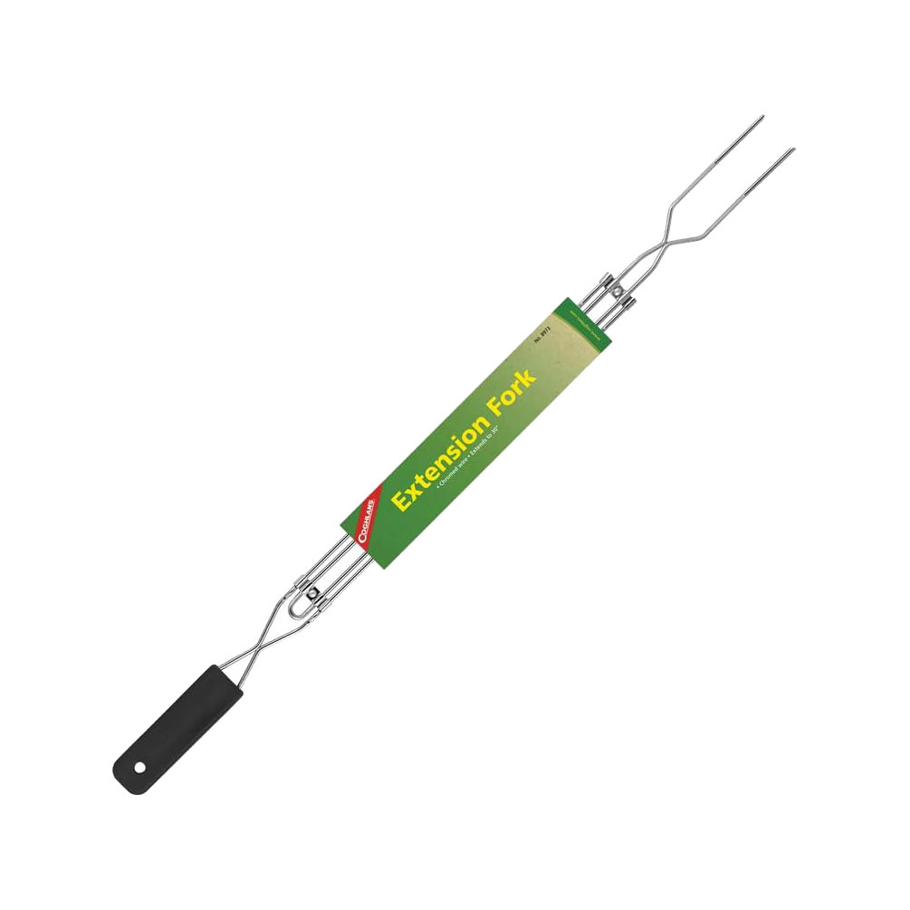 Ohne selbst mitgegrillt zu werden, halten Sie mit der ausziehbaren Grillgabel von Coghlans Ihre Würstchen dem offenen Feuer aus sicherem Abstand entgegen. Auch das Wenden Ihres Grillgutes auf dem Rost stellt kein Problem mehr dar und ist einfach möglich. Die Gabel ist ausziehbar von 51 bis 78 cm.