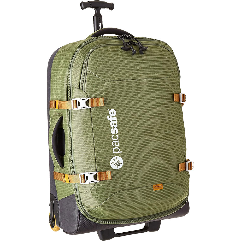 Mit der Pacsafe Toursafe AT25 Reisetasche sind Ihre Wertsachen sicher verstaut. Die weichen Seitenwände bestehen aus flexiblem Edelstahl und sind somit für Diebe unzugänglich. Die undurchdringlichen Reißverschlüsse lassen sich mit einem TSA-Schloss verschließen, sodass auch niemand durch den Reißverschluss an Ihre Tasche gelangen kann. So können Sie Ihre Wertsachen beruhigt in einem der vielen Fächer verstauen. Hosen, Pullover und Socken im Hauptfach bleiben dank der internen Kompressionsriemen und des Kordelzugs sicher an ihrem Platz. Und Sie können sogar Ihre Brieftasche am speziellen Clip befestigen. Der Pacsafe Toursafe AT25 ist ein diebstahlsicherer Rollkoffer mit weichem, halb zusammenklappbarem Design und integrierten Sicherheitsfunktionen für die sichere Aufbewahrung Ihrer Wertgegenstände. Der robuste und leichte Toursafe AT25 verfügt über eine buchartige Öffnung, ein Hauptfach mit Reißverschluss und Kompressionssystem mit Kordelzug sowie eine separate Fronttasche für optimale Organisation. Die 73-Liter-Tasche ist mit Hochleistungsrollen und Trittschutz ausgestattet, die sie auf unterschiedlichem Gelände robust machen. Dank des leichten, verstärkten Aluminium-Einrohr-Griffsystems lässt sie sich mühelos ziehen. Das Taschengewebe ist mit eXomesh Slashguard ausgestattet, einem leichten, flexiblen Edelstahldrahtgeflecht, das Ihre Ausrüstung vor schnellem Diebstahl schützt. Die doppellagigen ToughZip-Reißverschlüsse verhindern, dass Gelegenheitsdiebe mit scharfen Gegenständen in die Tasche einbrechen. Die kussbaren Reißverschlüsse lassen sich einfach zusammenschieben und mit einem Vorhängeschloss sichern. Pacsafe sorgt dafür, dass Reisende immer einen Schritt voraus sind, indem es ihre Ausrüstung mit einer großen Auswahl an stylischen Abenteuerrucksäcken, Freizeittaschen, Stadttaschen, Damentaschen und Kamerataschen sowie Gepäck und Reisezubehör vor Gelegenheitsdieben schützt.
