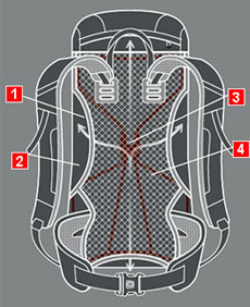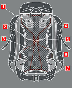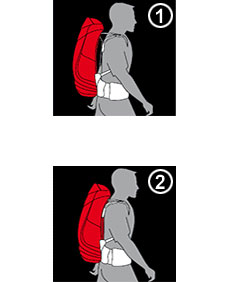 The gap between the backpack and the body ensures excellent ventilation. 2. Full-contact back system Sits close to body for effective load control. |