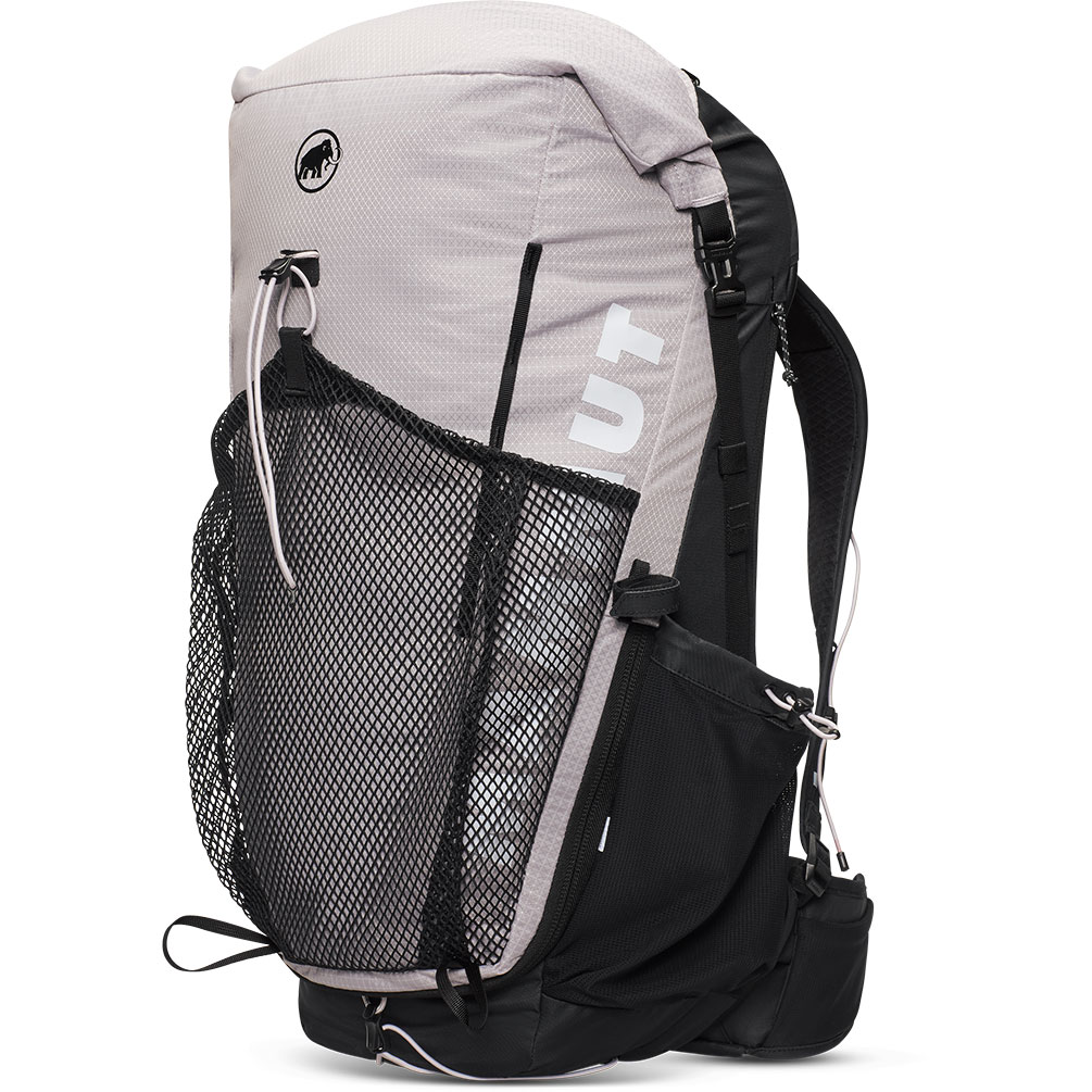 This backpack for day hikes and minimalist trekking prioritises comfort, freedom of movement and easy access. Our improved, patented Mammut Active Spine 3.0 adapts to the movements of your spine and ensures even weight distribution, while important items such as water bottles or the integrated rain cover are always just a handle away. The back and hip belt of the women's model are shorter and the shoulder straps are tailored to the female physique. With the 28-35 litre Ducan Spine for women with a mesh back and modern, technical design, demanding stages seem a lot shorter!