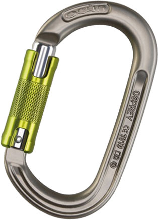 Slightly asymmetric carabiner of oval shape, with twist-lock (automatically