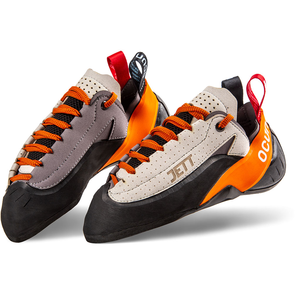 Reliable climbing shoe for long climbs - Long and partly covered lacing along with hard midsole predestine Jett LU for technically challenging routes where precise footwork matters. Bigger volume of the instep and tip guarantee comfort while climbing long routes and multipitches.