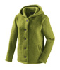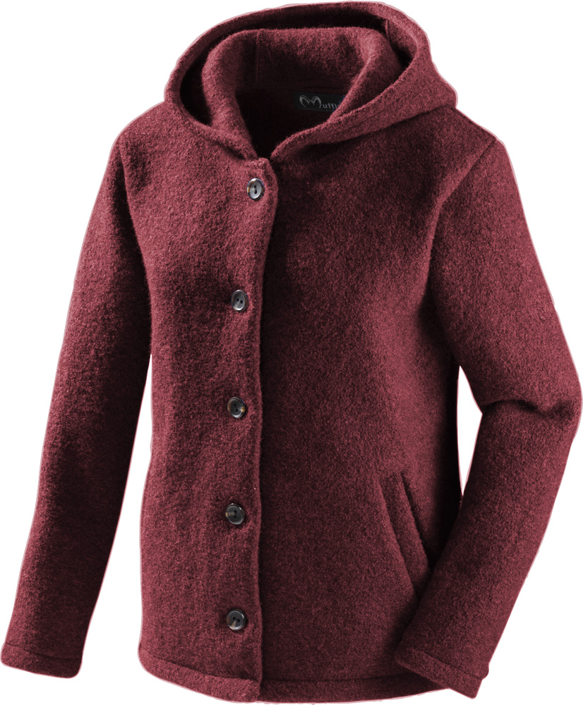 Slightly waisted women's cardigan with button facing and hood made of pure new wool
